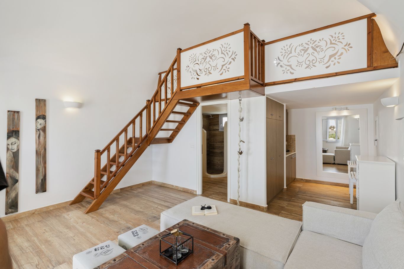 Designed in seamless harmony with traditional Aegean architecture, this two-level Suite blends Cycladic elegance with modern comfort to create a truly sophisticated retreat.