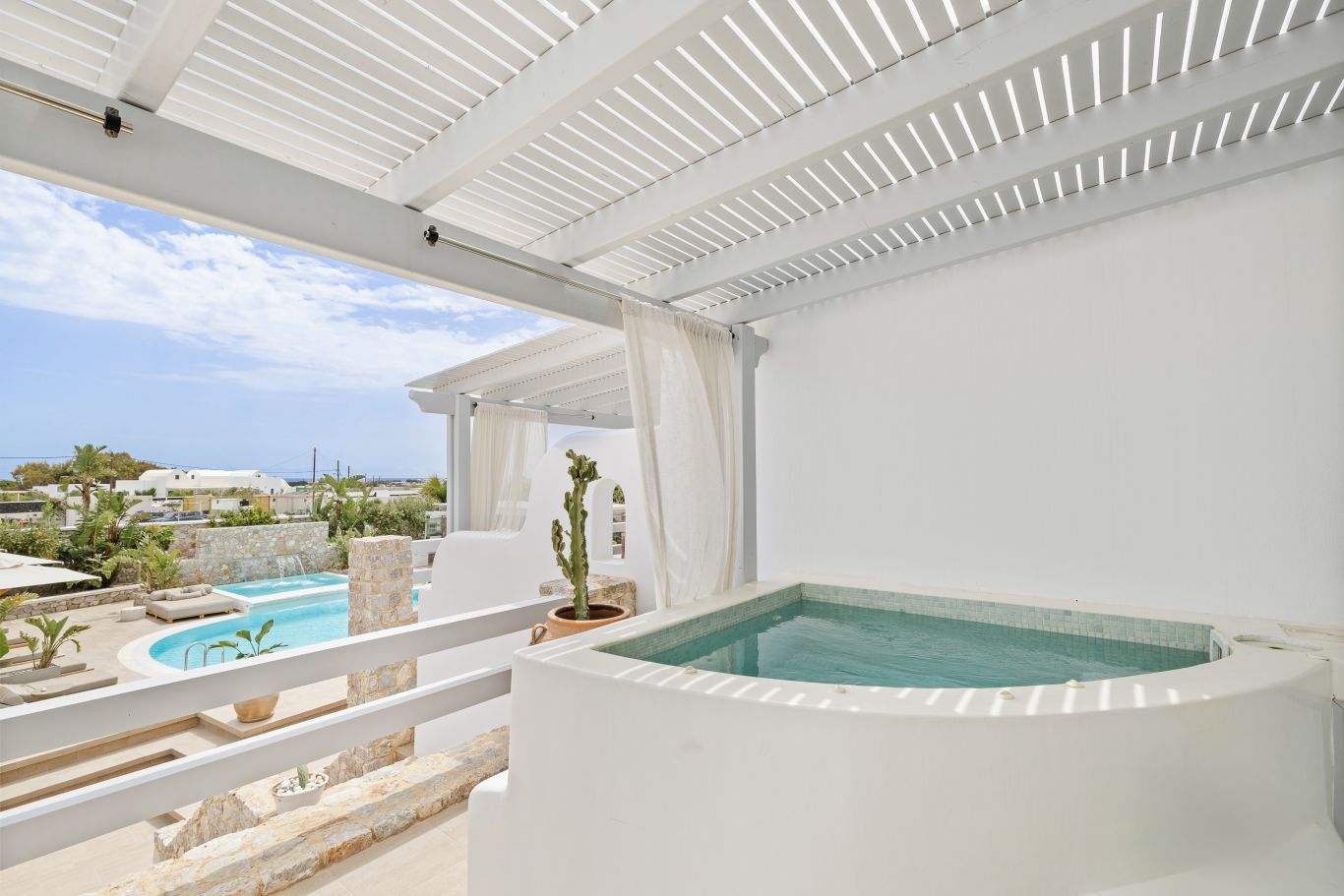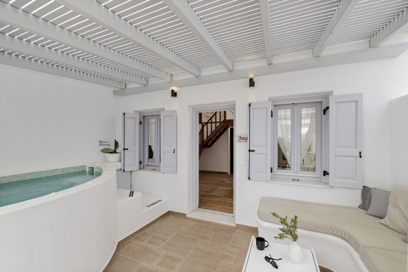 Your private escape in Santorini—crafted for serene moments, sun-drenched terraces, and the quiet luxury of your own Jacuzzi pool.